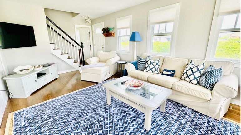 Open living room, dining area, fully stocked kitchen, bedroom with 2 twin beds,full bathroom, laundry area. First floor deck has gas grill and teak outdoor furniture.