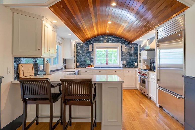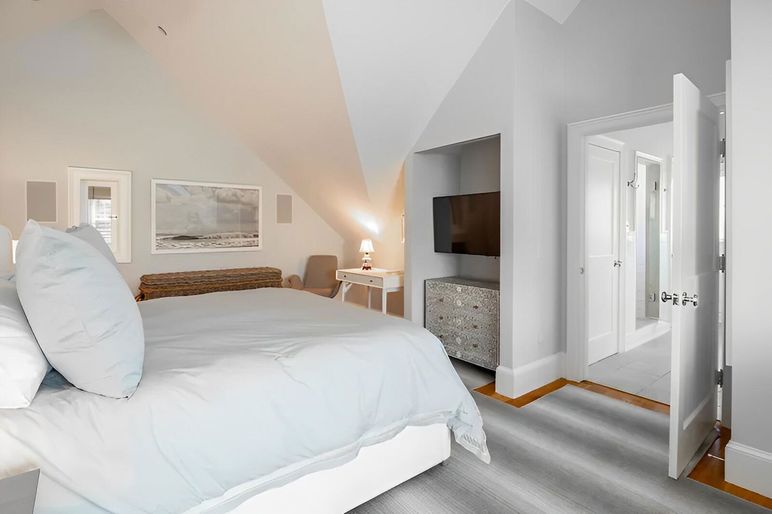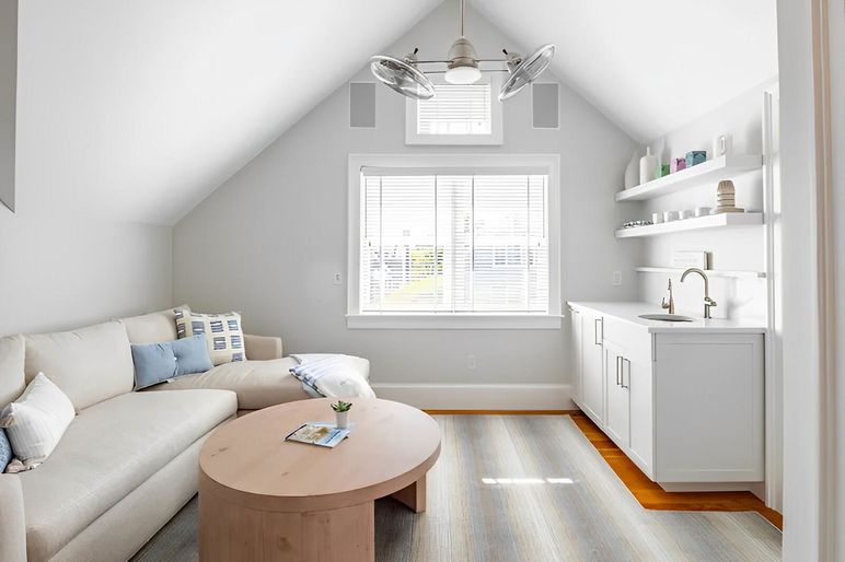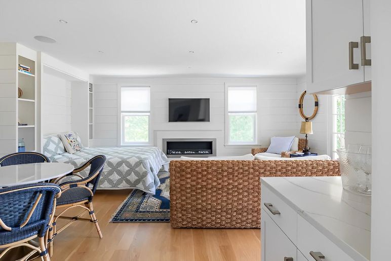 This meticulously maintained Nantucket rental home features all brand new, upscale furnishings and decor. Spacious and comfortable, the Main House offers three ensuite bedrooms plus an overflow living/sleeping area in the lower level. There is also a 750+ square foot, one bedroom Studio. The wonderful outdoor space, featuring a small, therapeutic Soak salt water pool connects the two structures. This fantastic Hummock Pond/Cisco location is halfway between Nantucket Town and South Shore. The convenient bike path leads you to island favorites such as Cisco Beach, Bartlett's Farm, Cisco Brewery, and 167 Seafood. First Floor: