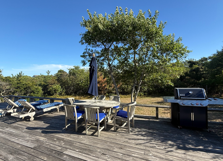 Outdoor living is a highlight, with a gas grill, spacious yard, ample deck seating, and an outdoor shower. The home is conveniently located just moments from an NRTA Shuttle stop with seasonal service, making it easy to explore the island. Adding to the convenience, enjoy a 10-minute walk to multiple beaches and an approximately 5-minute walk to island favorite restaurant and market, Millie's.