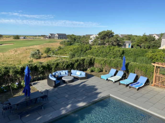 A GOLFER'S DELIGHT. Beautifully appointed upsidedown house with high-end amenities located at the end of a cul de sac with views of the Miacomet Golf Club 18th fairway and over to the ocean, and a brand new pool has just been installed, too!! Renovated in 2016, this four bedroom and two and a half bath home has all the comfort and privacy for a Nantucket getaway.