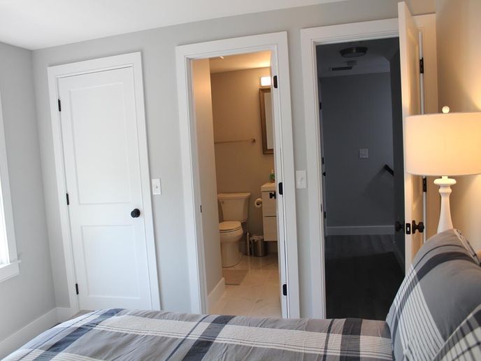 Step in from the front porch to a bright and open living, dining, and kitchen area with seamless access to the side deck and yard—perfect for indoor-outdoor entertaining. A full bathroom is also located on this level.