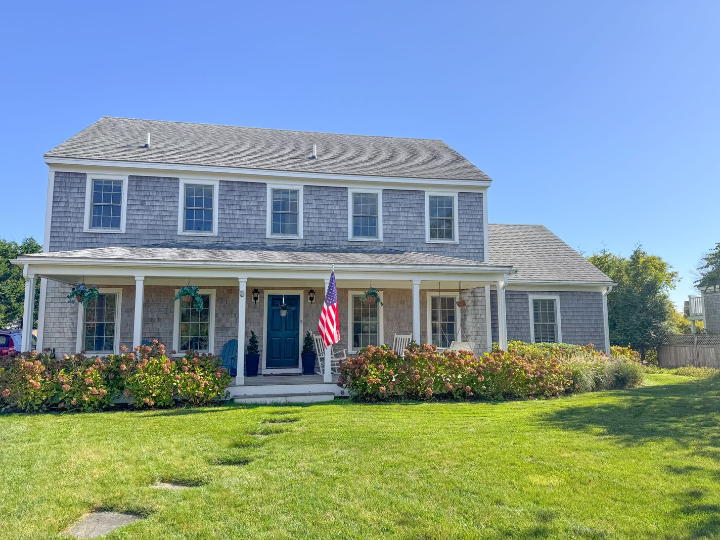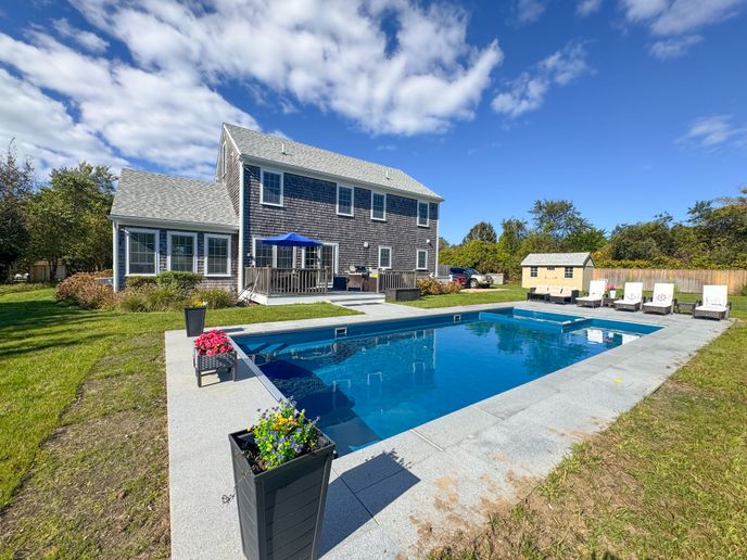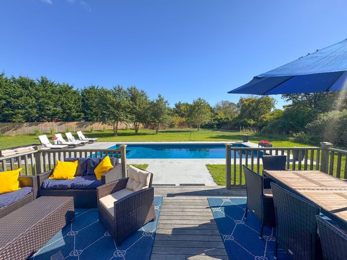 This wonderful family home is the perfect Nantucket vacation rental for a large family or two families to share. Located in the Hummock Pond area it offers a quiet, county setting with a covered front porch, large yard and brand new 36 ft heated pool with seated hot tub/spa and shallow lounging/children's area. This spacious five bedroom, three bathroom home easily sleeps 11. Close proximity to Town, Cisco Beach, Bartlett Farm, and Cisco Brewery and the bike path. Rental includes 7 bicycles for guest use. Rental includes a RAV 4!