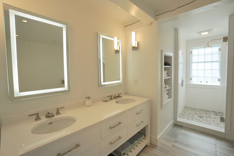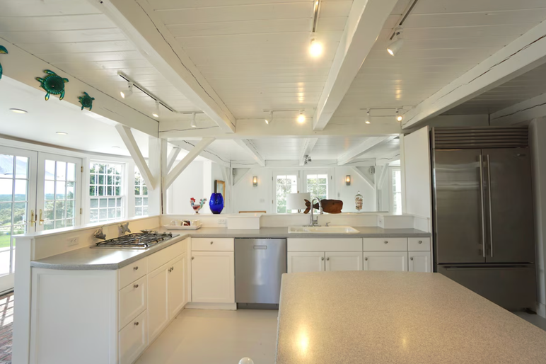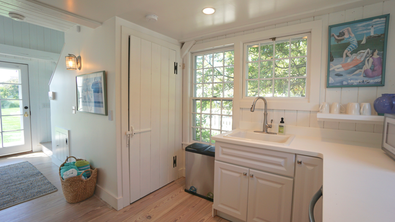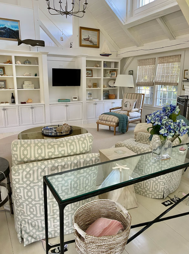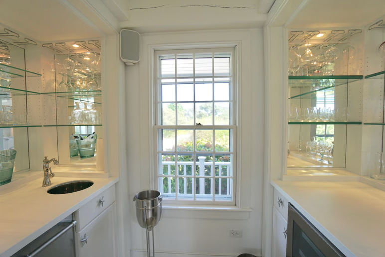 MAIN HOUSE: Open two-story living room with Smart TV and gas fireplace; Large family room with Smart TV next to kitchen; Lovely wet bar with wine refrigerator and ice maker; Three sets of French doors out to a sweeping covered porch, decks and a vast screen porch; Formal dining room that seats 12-14; Country kitchen with a new Subzero refrigerator; Sonos music system.