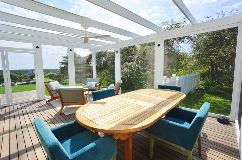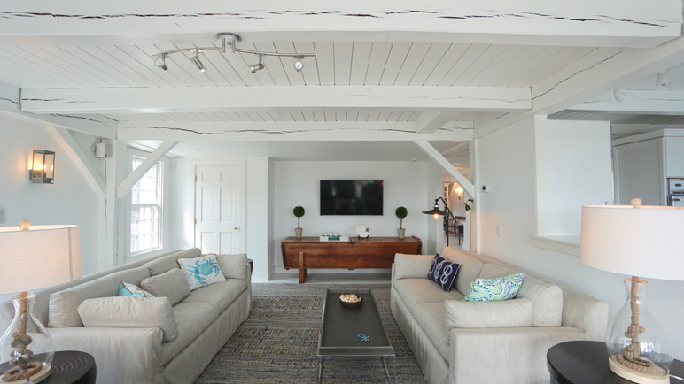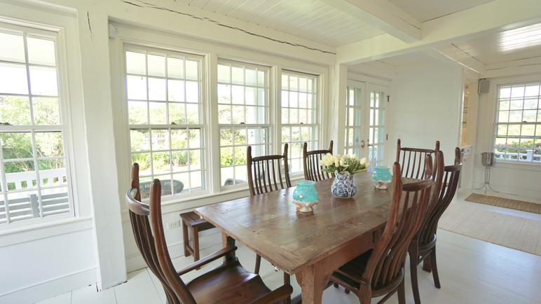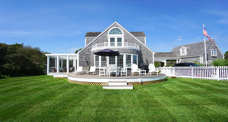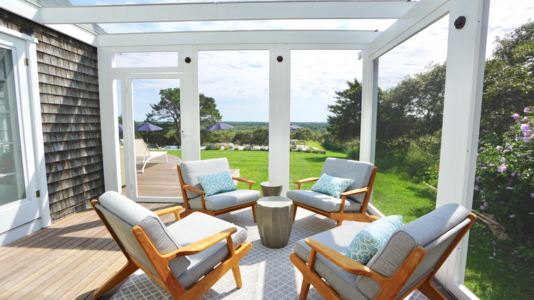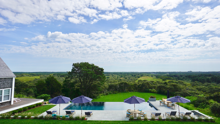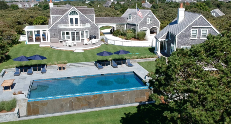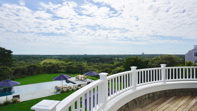 A sprawling "post & beam" property; this estate was designed by award-winning architect Lyman Perry. It sits on 2.7 acres, high on the hill. Impeccably maintained and professionally decorated, the home is surrounded by landscaped grounds and features abundant outdoor living spaces. You can take a dip or spend the day lounging at the stunning 20 x 44 pool. The romantic infinity edge faces an unobstructed view of conservation lands. The stone deck is fully-furnished with new teak furniture for sunning, reading, lounging or dining al fresco. Don't feel like lounging? Use one of our four bikes to pedal around the island. We are two minutes from the Polpis bike path and a ride away from beaches, tennis and town. The decks, screen porches, & blue stone pool patio make the outdoor living spaces comfortable, peaceful and inviting. The main house includes a large screened in living area, beautiful porches and a lovely pool/spa area. Enjoy vistas to the harbor, or overlook the natural beauty of the moors. It s an enormously spacious property with at least nine hanging-out spaces for talking, reading, games, TV and swimming. A large lawn is perfect for all family games and sports. There is central air conditioning throughout plus ceiling fans to keep you cool. The back yard is fenced. The entire property is very private with mature trees as well as vibrant hydrangeas everywhere. This is a comfortable, fun, luxurious beach house with modern amenities and historic charm.