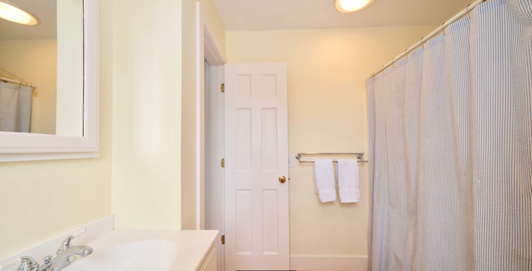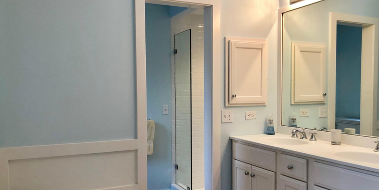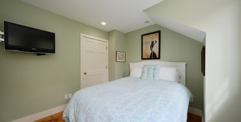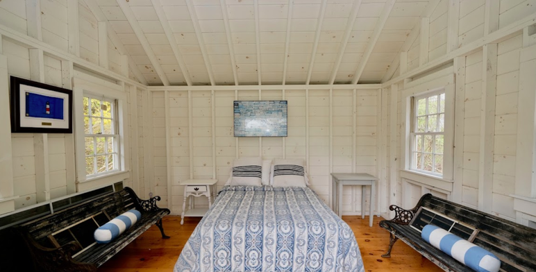 Inside the main house, enjoy central air conditioning, pine hardwood floors, five flat-screen TVs, a Sonos sound system, and a modern kitchen equipped with updated appliances. The generously sized primary suite, renovated in 2018, features a spa-style bathroom with a large tiled shower and double vanity.