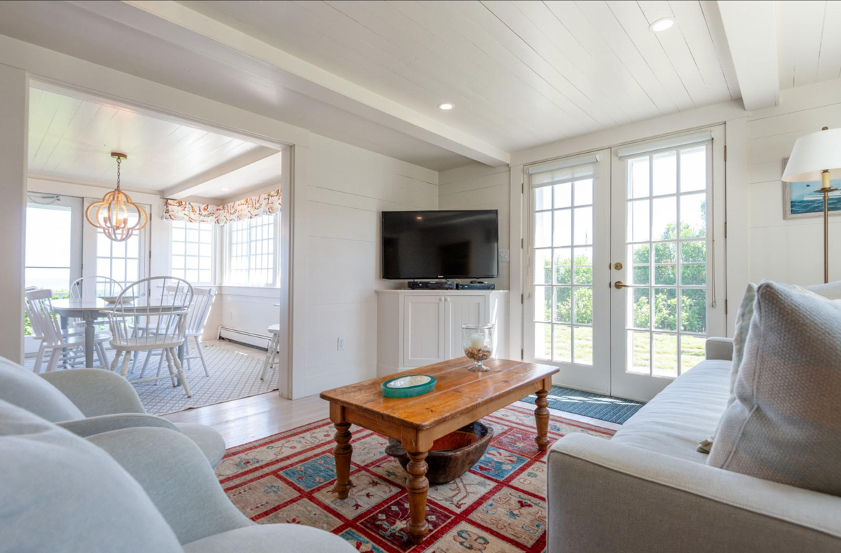 This charming antique has a view from nearly every room. Beautiful windows and lovely doors open onto a wrap around porch and wood burning fireplace. Kitchen is fully equipped with all the necessary components for entertaining. One full bath.