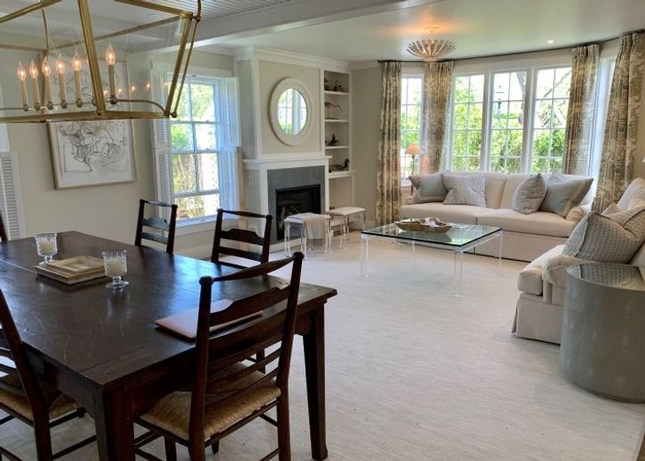 The entry hall with powder room, laundry room and storage leads to the open concept gourmet kitchen, dining room and living room with fireplace. The fine details are an unexpected pleasure throughout the house. The spacious kitchen features a large marble island, Wolf stove, Subzero refridgerater, custom cabinetry and a water view. A den off the living room is the perfect place to enjoy a quiet moment or watch a movie.