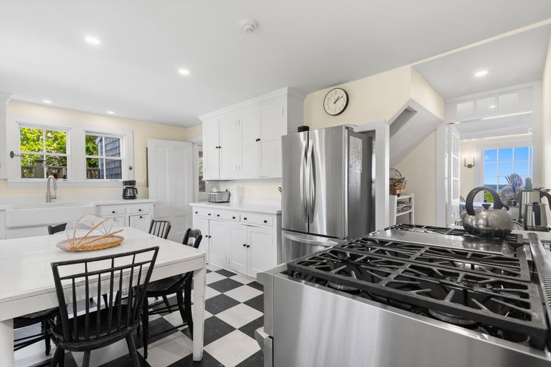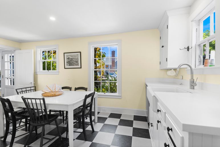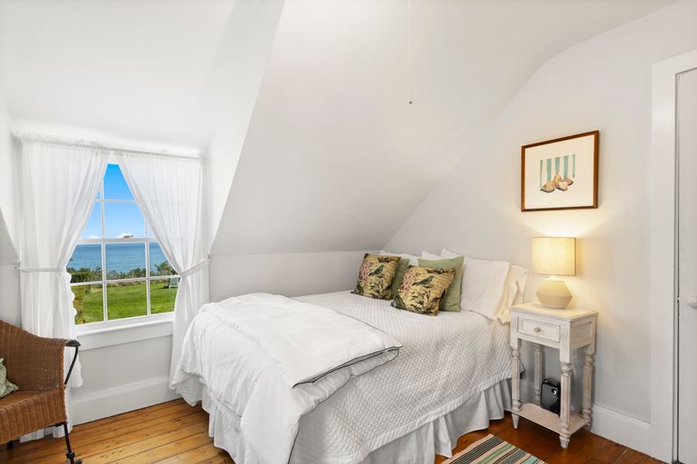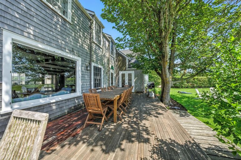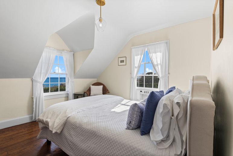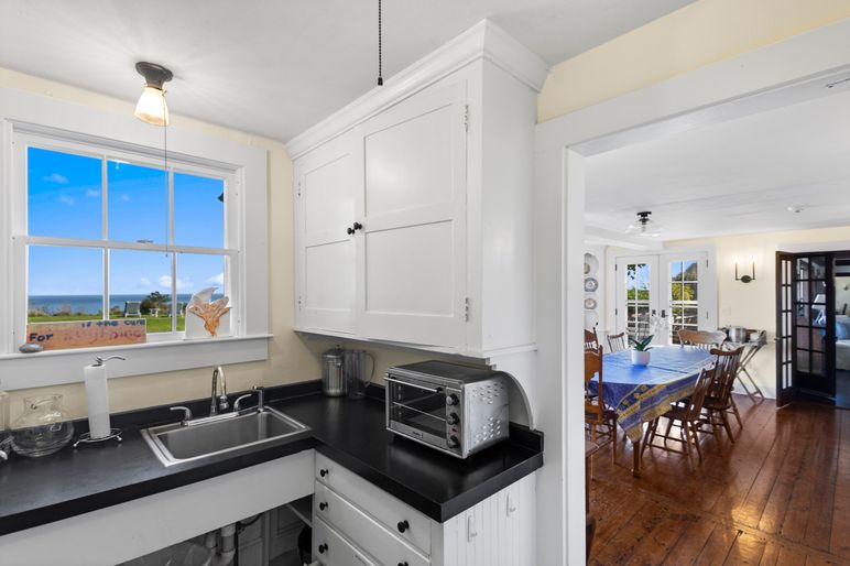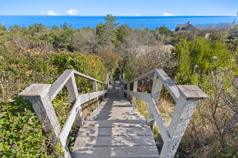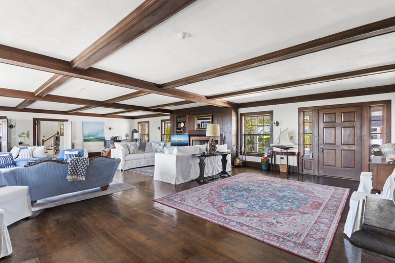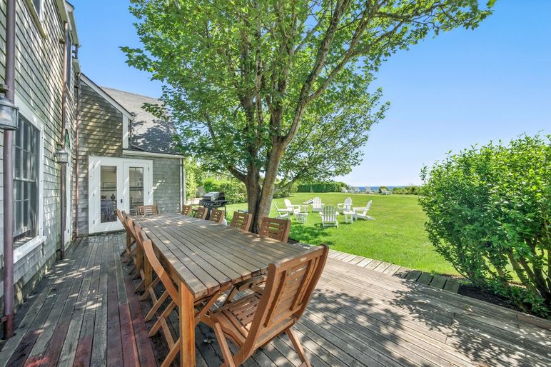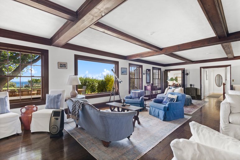 Also on the first floor is a dining room, a den,and an en-suite bedroom, complete with it's own ocean facing sitting room. The kitchen [with a butler's pantry] has brand new appliances. French doors open to a wide deck with a sizeable outside dining area.