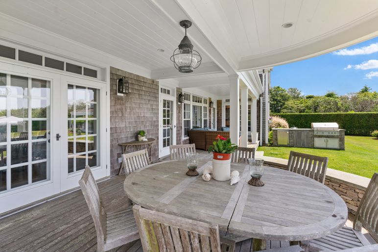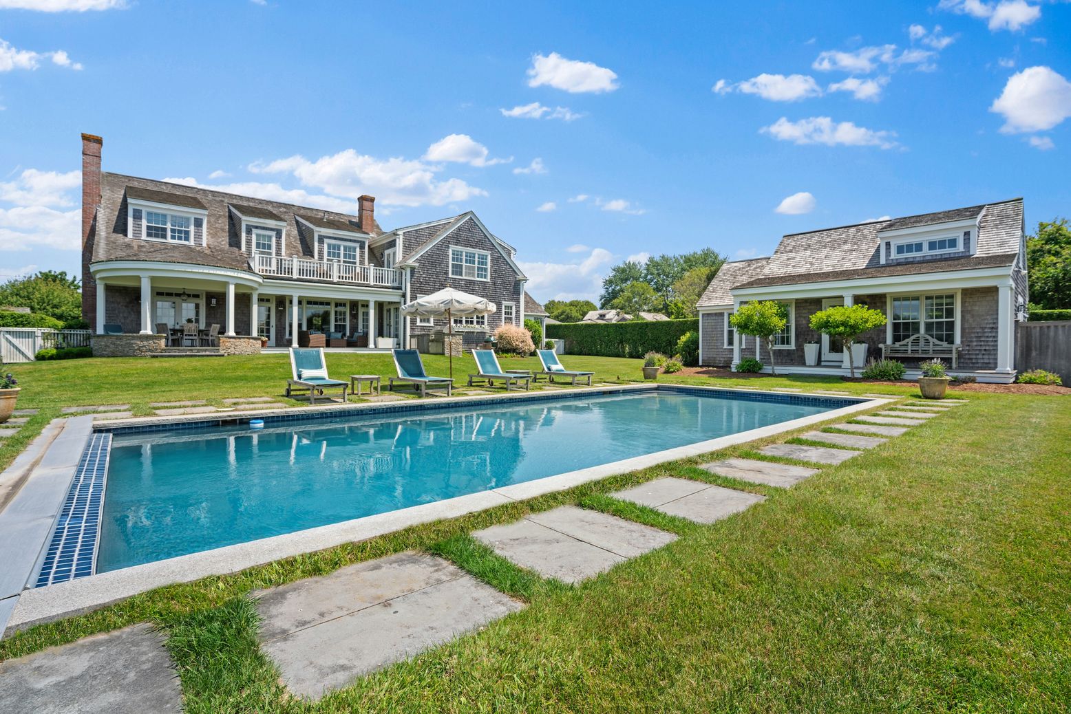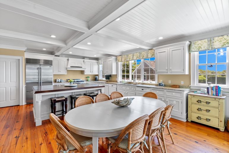 Enter from a charming covered porch into a light-filled home designed for relaxed island living and effortless entertaining. The first floor features a spacious living room with wood-burning fireplace, custom built-ins, and direct access to the pool and backyard, along with a cozy sitting/TV room and a private office. A large chef’s kitchen anchors the home with a generous center island, high-end appliances, multiple refrigerators, and an adjacent dining area, all opening to a deck and covered outdoor dining space overlooking the pool. A first-floor queen bedroom with ensuite bath offers convenience and privacy, while thoughtful extras include a mudroom, pantry, laundry area, and outdoor kitchen with grill and beverage fridge.
