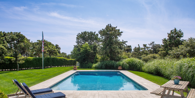 An ultra-private five-bedroom, 4.1-bathroom Surfside estate set on three acres of beautifully maintained grounds. The property features a 20' x 40' gunite saltwater pool and is ideally located near multiple South Shore beaches.