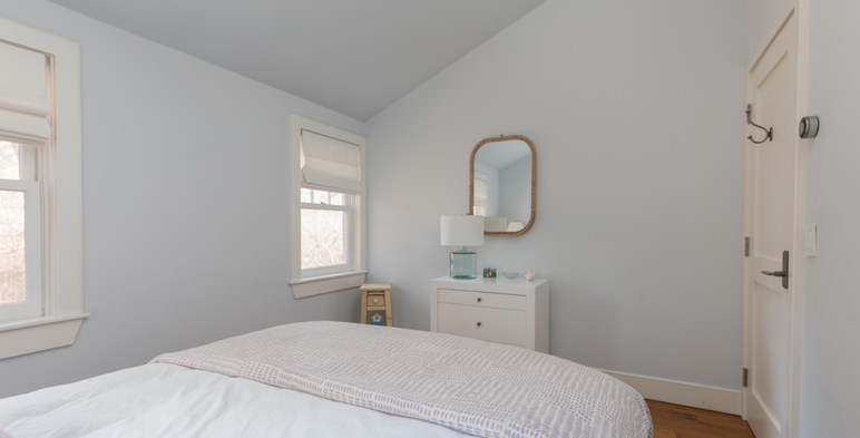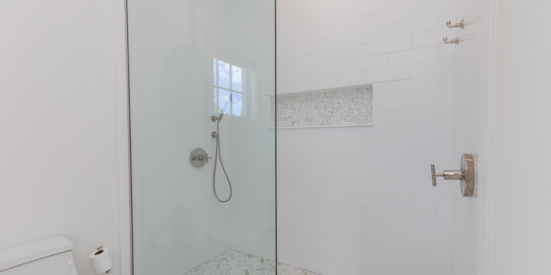 This level also features a serene primary suite with a king bed and a stunning marble en-suite bathroom, complete with an oversized double vanity and a spa-inspired walk-in shower with elegant marble tile. A private guest wing offers two additional bedrooms—one with twin beds and the other with a queen—sharing a full hall bathroom with a tiled rain shower. An elegant powder room completes the thoughtfully designed first-floor layout.
