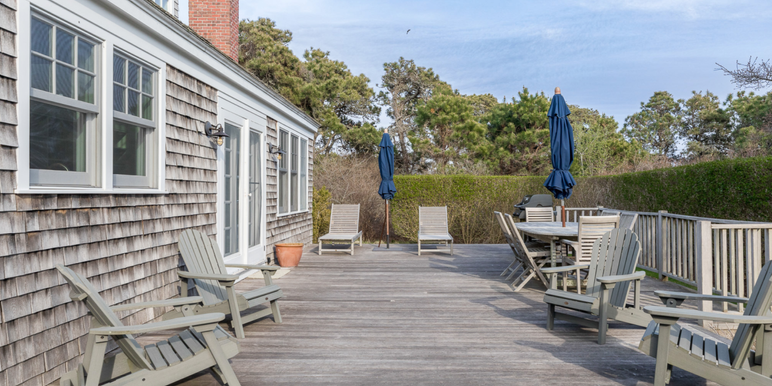 Located less than one mile from multiple South Shore beaches, the cottage sits on an ultra-private, wooded acre, offering exceptional seclusion and natural beauty. The outdoor living spaces include an oversized deck with a gas grill, an outdoor dining area for eight, and a separate covered deck with two Adirondack rockers—perfect for morning coffee while overlooking the professionally landscaped yard.