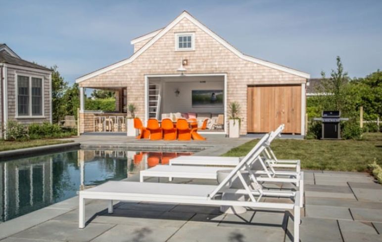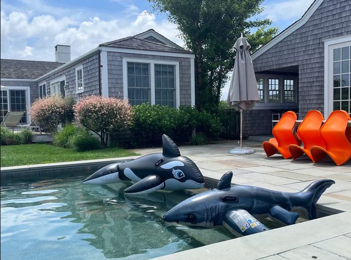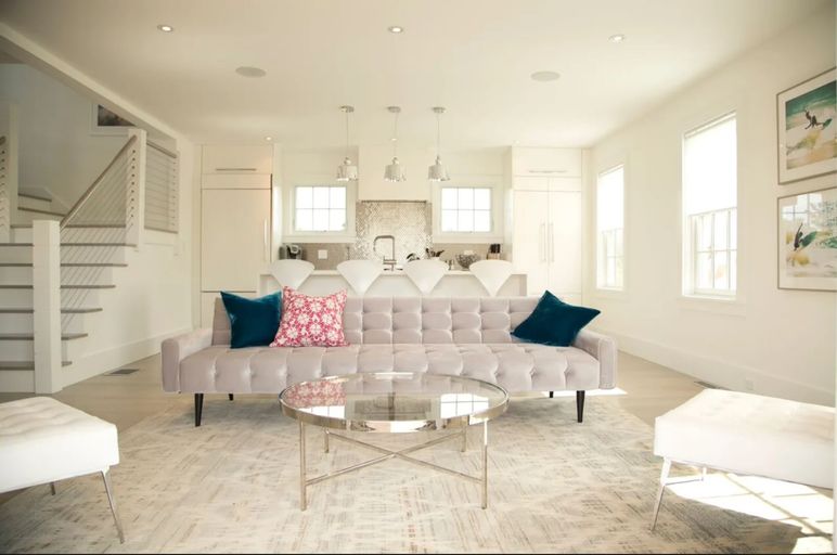 This beautifully renovated coastal retreat offers the perfect blend of modern sophistication and beachy charm. It’s the ideal home for multi generational family vacations or 2 families to share. This 6 bedroom Surfside estate with pool and cabana is located across the street from Fisherman's Beach. The main house features 3 bedrooms with en-suite bathrooms plus a powder room.
