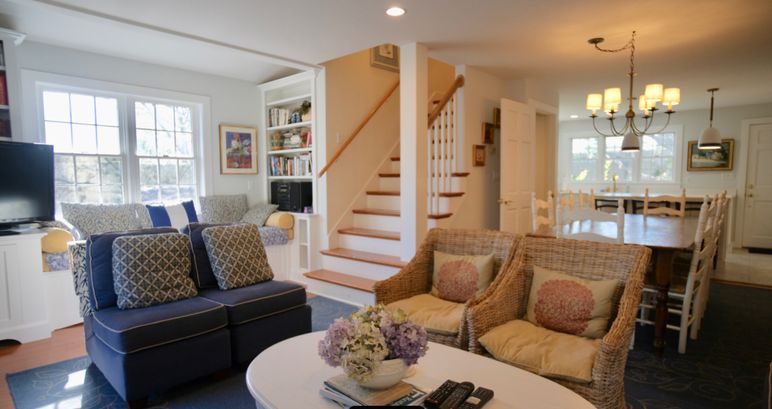 Custom built rental home centrally located between Nantucket's historic Town and South Shore beaches. This vacation home has been professionally decorated and offers three full floors of living space as well as an attractive and landscaped yard and patio area for barbecues and extended outdoor living space. There is a new brick patio in the front of the house and a little outdoor sitting area in the back - perfect for relaxing with coffee and a book.