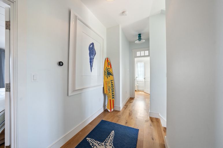 An expansive 12-foot-wide deck spans the full length of the home, providing generous space for outdoor dining, lounging, and conversation against a backdrop of endless ocean views. Mature coastal plantings surround the property, while a private staircase leads directly to the beach for swimming, shelling, and surfcasting. With uninterrupted Atlantic vistas and immediate shoreline access, the outdoor spaces are as captivating as the interiors, completing this remarkable Nantucket waterfront offering.