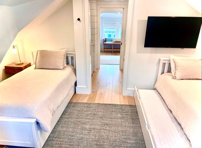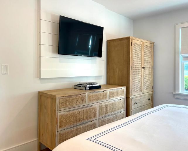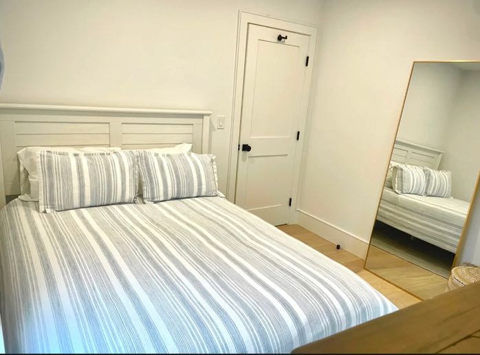 Enter into the living room from the street or into the kitchen from the patio after a fun day at the beach. The primary bedroom (king) and guest bedroom (queen), share a full bath. There is also access to the basement from this level.