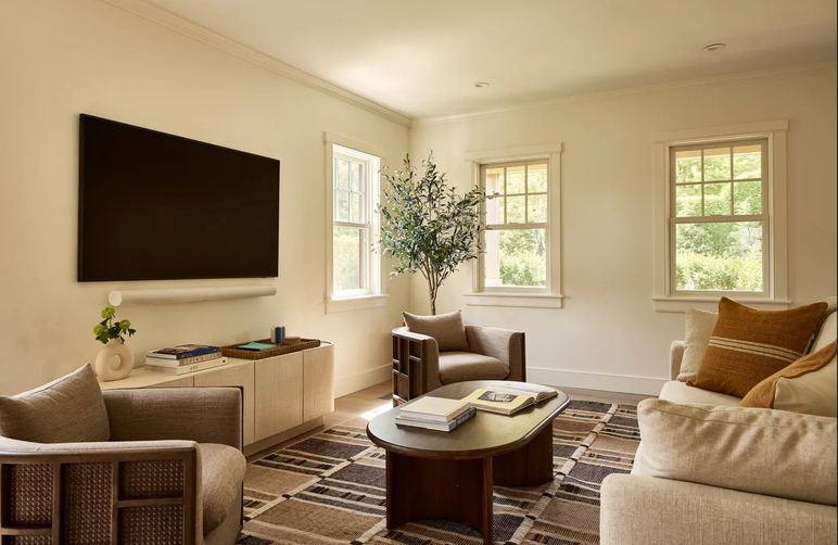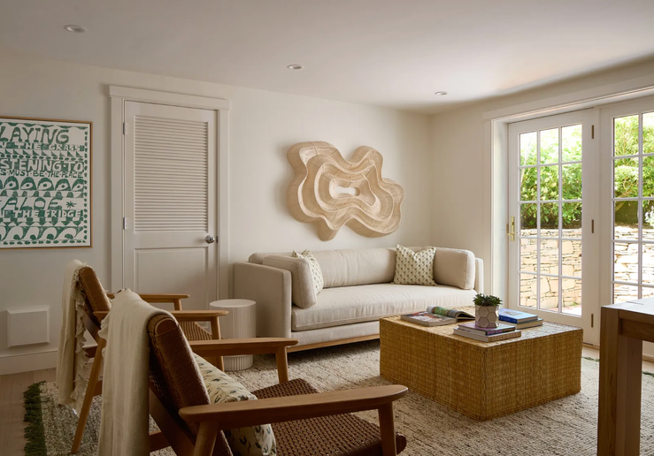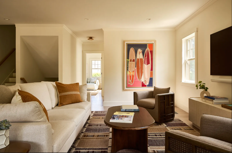 Located on a quiet street just minutes from town, the island's best beaches, and the scenic bike path. Expertly furnished by Hannah Zari Interiors, the home features a relaxed coastal aesthetic with custom furnishings, neutral tones, and subtle busts of color