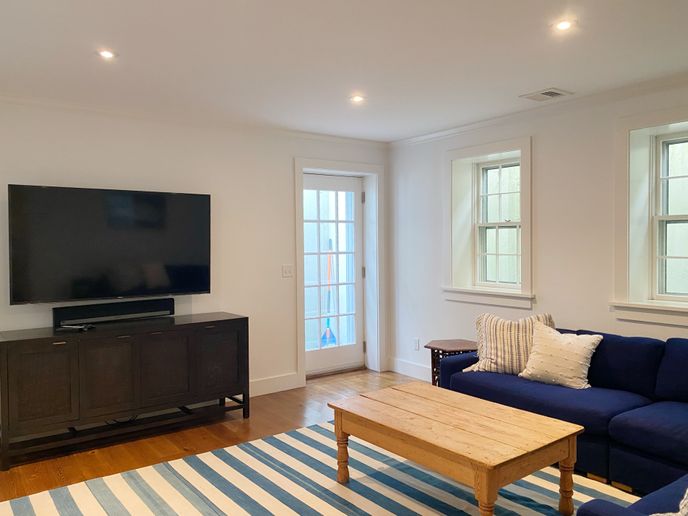 Nestled on a quiet street, “Whirlaway” is a charming Nantucket property located less than a third of a mile from Main Street cobblestones and only steps from the Cisco and Madaket bike paths. This sun-lit open concept home provides ample space for entertaining. Four thoughtfully designed en-suite bedrooms in addition to a media room and laundry room. This property features a spacious outdoor patio perfect for al fresco dining, complete with a fire pit and an outdoor shower. The front porch complete with adirondack chairs, is perfect for peaceful lounging. This property also includes off-street parking for 2 vehicles.